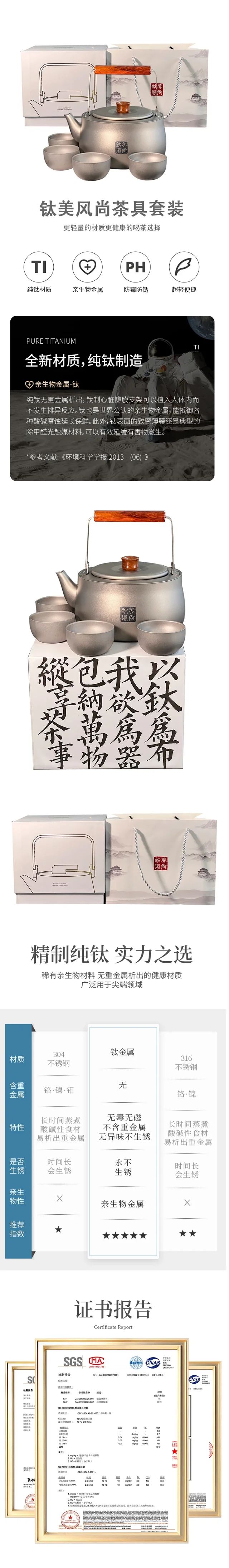 特点:高级纯钛,经过多道工序制作而成,呈现优雅的金属质感饰面;壶身形流畅、壶嘴断水自然,手柄防滑设计、耐高温,高级纯钛抑菌保鲜,泡茶、煮茶时无金属析出,保持茶叶原有茶香。